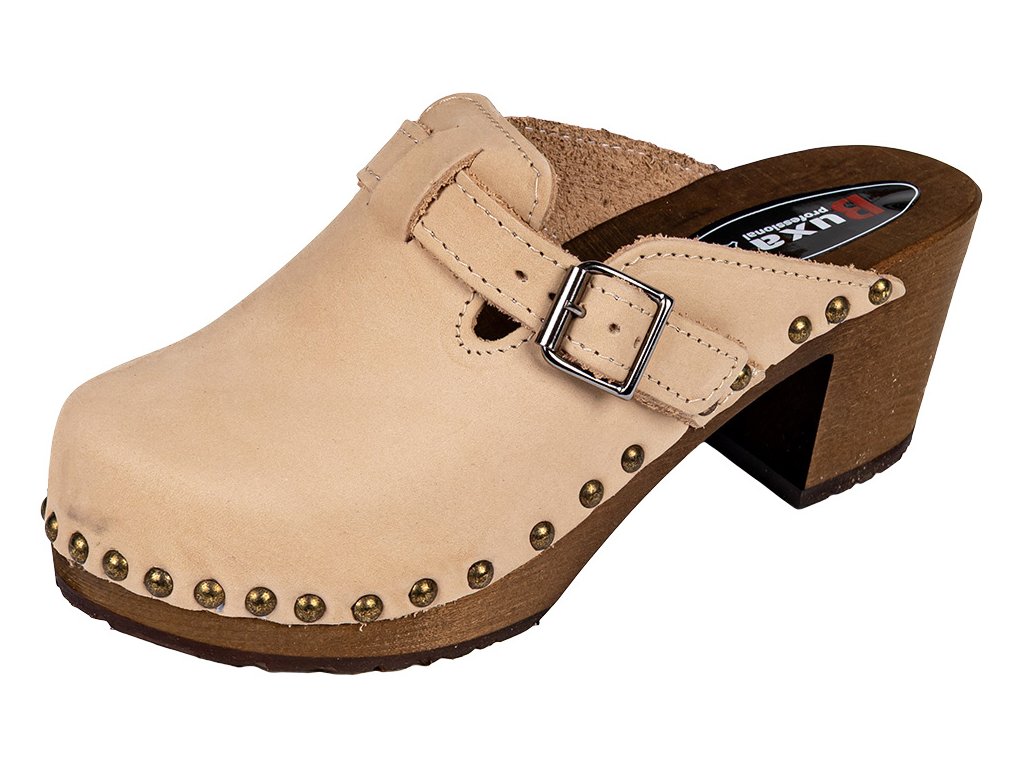 Elegantní dřeváky na podpatku Buxa OS4 béžové z nubuku
