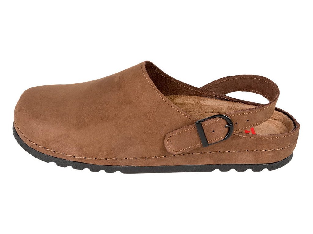 Naše alternativa? Preventivní žabky z nubuku BUXA BZ130. Zdravotní žabky jsou povinnou výbavou každého zdravotníka. Kožený svršek neomezuje v pohybu a zabraňuje oděrkám a mozolům. Polštářově měkká podešev z MEMORY pěny optimálně podpírá anatomické struktury chodidla, aby nebyly příliš líné nebo těžké. Speciálně navržené konvexity na stélce vytvářejí dokonalý rám pod chodidlem, který zabraňuje vzniku/prohlubování plochých nohou a bolestem spojeným s degenerativními změnami, jako jsou patní ostruhy, hallux rigidus apod. Široká čela ponechávají dostatek prostoru pro volné roztažení prstů, což snižuje riziko deformací (zejména oblíbené halluxy nebo kladívkové prsty). Protiskluzová podrážka z nášlapné gumy zajistí bezpečnost i na kluzkém povrchu .