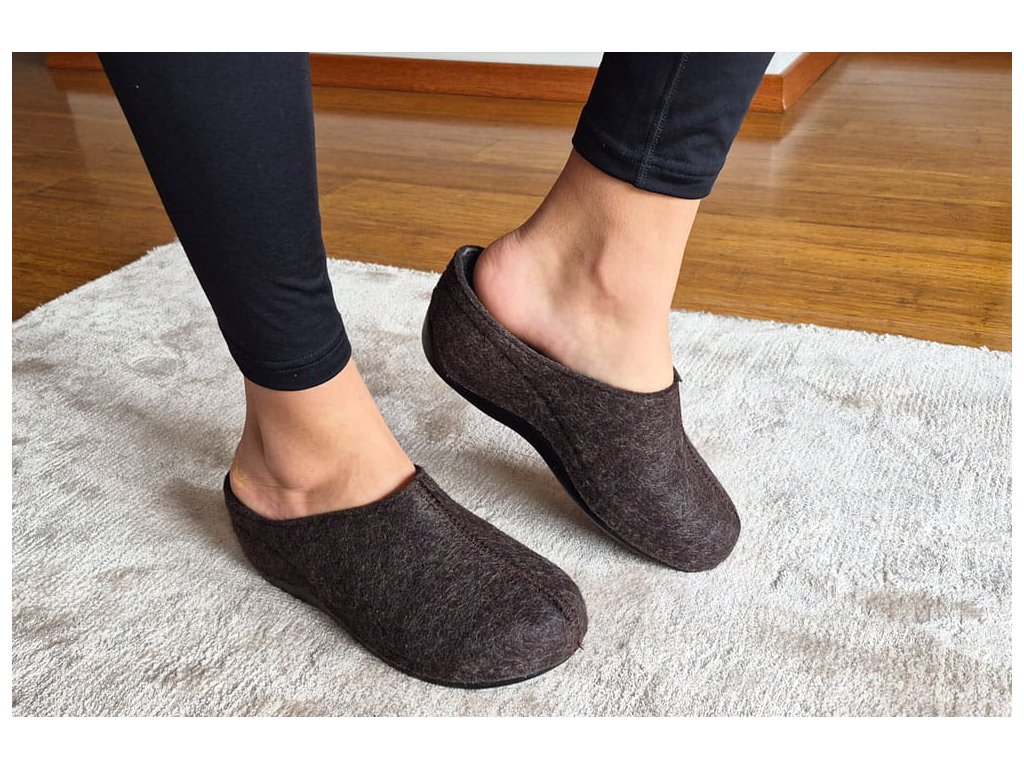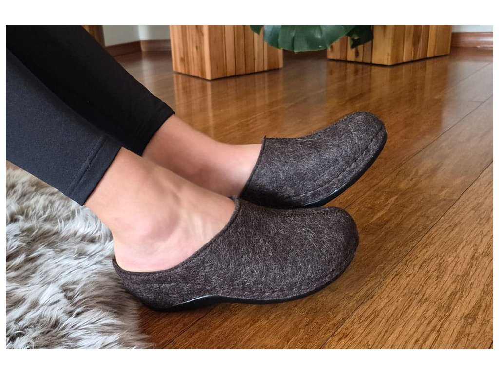 - Stélka a svršek jsou vyrobeny ze 100% přírodní, certifikované vlněné plsti MADRID. Tento materiál je vysoce odolný a měkký. Jeho výrobní proces eliminuje potřebu invazivních metod a látek, takže je šetrný k životnímu prostředí a plně ekologický. Tyto pantofle na klínku mají pozitivní vliv na pokožku, zabraňují nadměrnému pocení a odření nohou, jsou hypoalergenní a poskytují vynikající izolaci před chladem.