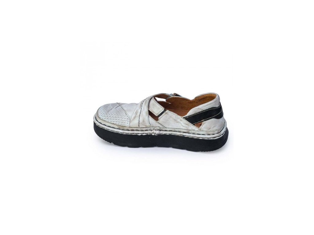 Tyto dámské sandály s plnou špičkou LESTA KOLÉBKA je anatomicky tvarovaná obuv se speciálně zakřivenou podrážkou která během Vaší chůze nebo stání neustále procvičuje svaly a zpevňuje nohy. Stélka tlumí nárazy při chůzi, rovnoměrně rozkládá tlak a předchází namáhání šlach.