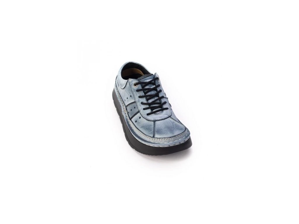 dámská i pánská kožená obuv s aktivní podrážkou 3038-0008 modrá stíraná