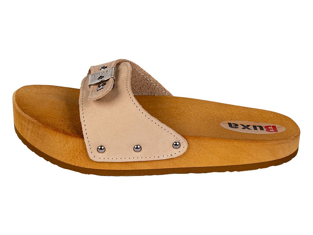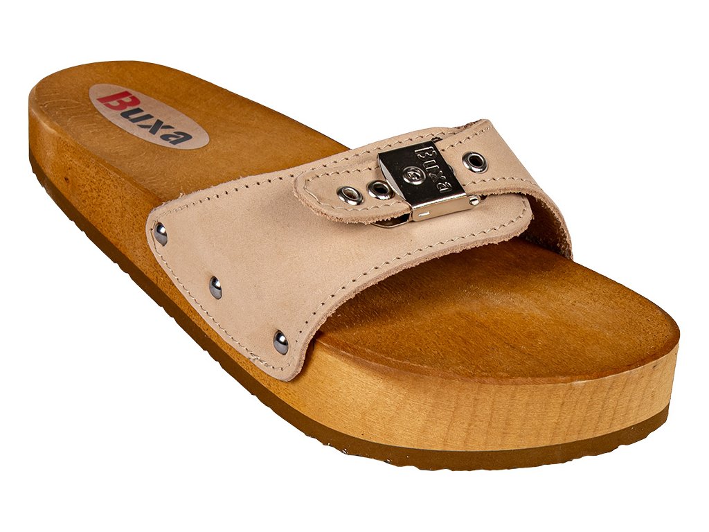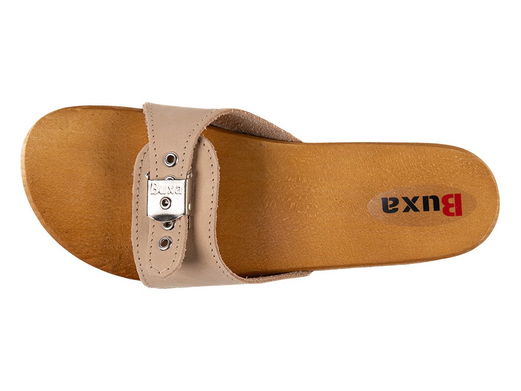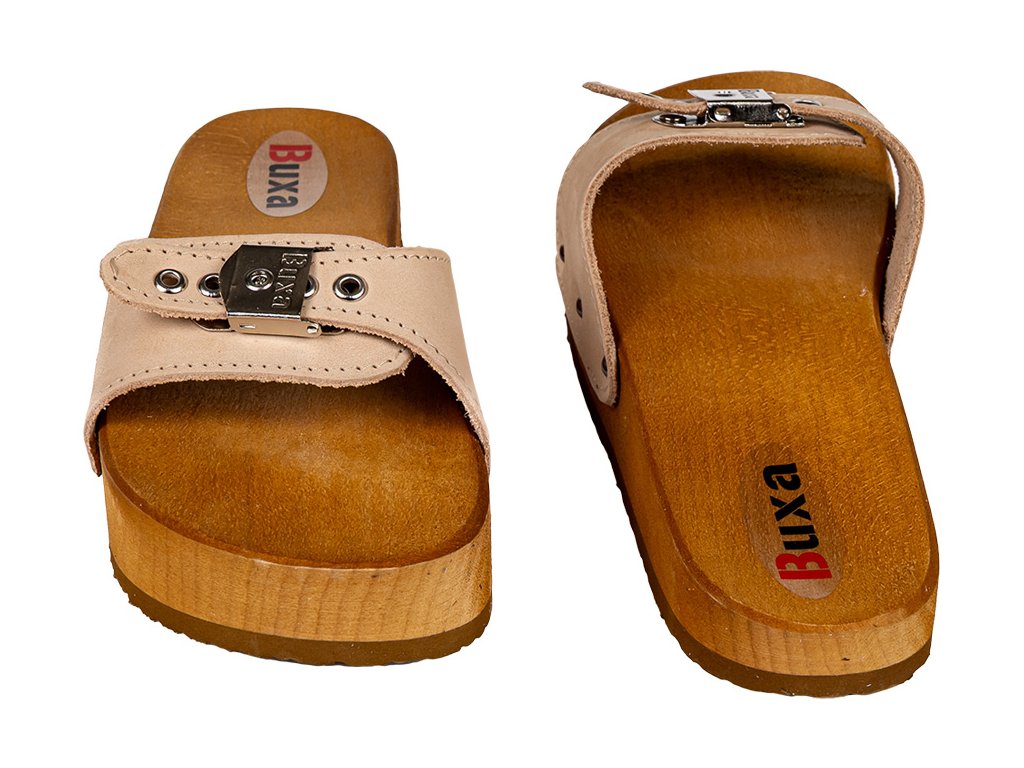 Zdravotní žabky CE1 na bolesti páteře a proti celulitidě jsou jedním z modelů profilovaných bot značky Buxa. Vyznačují se unikátním tvarem podešve - pata je nižší než prsty, při zachování vhodného profilu pro chodidlo. Úroveň paty je zvýšena o devět stupňů oproti úrovni přední části podešve. Díky takto promyšlenému designu žabky posilují správné držení těla a stimulují svalové skupiny, které jsou obvykle stažené. Díky tomu jsou pánev a páteř umístěny do vhodné polohy a svalové napětí se zvyšuje. To vše znamená, že uživatel žabek již netrpí žádnými neduhy souvisejícími s držením těla. Další výhodou žabek Buxa je, že podrážka vyrobená z přírodního dřeva působí na různé části chodidla, zlepšuje krevní oběh a vzhled nohou. Díky použití nejlepšího druhu dřeva podrážka saje pot a nezpůsobuje pálení nohou.