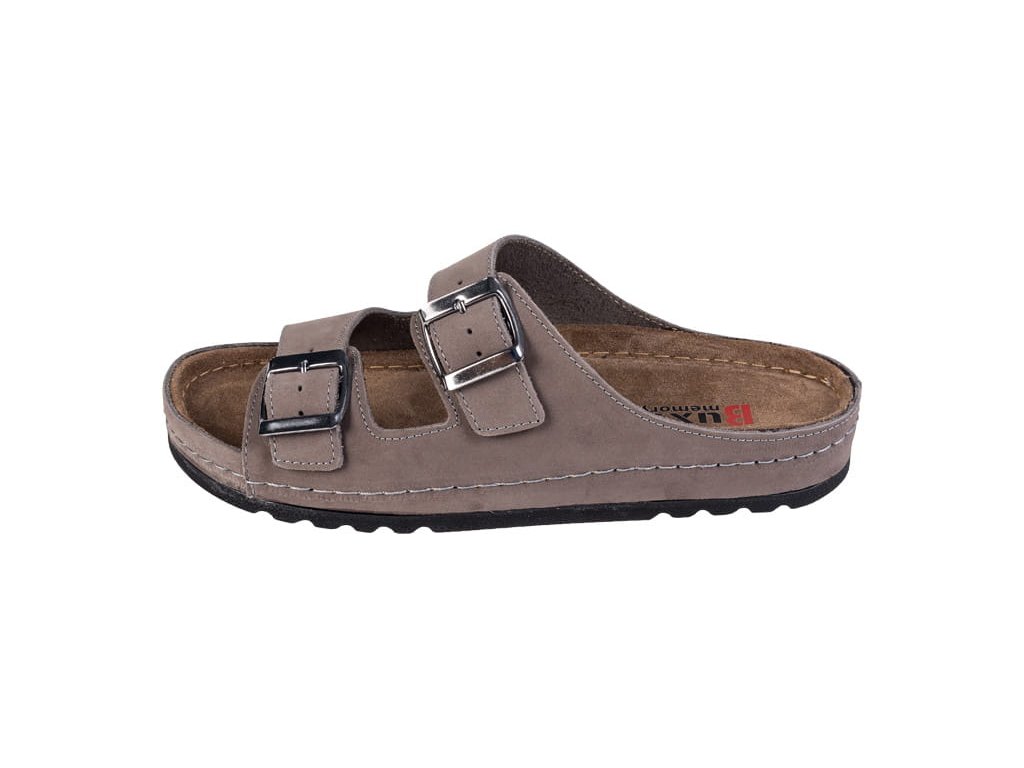Model BZ110 se zapíná na dva kožené pásky s nastavitelnou šířkou. Ručně šitý svršek zajišťuje vysokou odolnost obuvi. Podešev je vyrobena z lehkého a velmi pružného materiálu, který eliminuje mikrootřesy způsobené při chůzi. Obuv má anatomický tvar , který poskytuje oporu pro podélnou klenbu, dále prohlubeň pod patou a rolování pod prsty a širší přední části zajišťují volné postavení prstů. Podšívka je vyrobena z nejkvalitnější přírodní semišové kůže , s MEMORY pěnou přímo pod podšívkou . Vyšší okraje chlopní zajišťují stabilizaci a ochranu chodidla a protiskluzové podrážky zaručují bezpečnost používání.